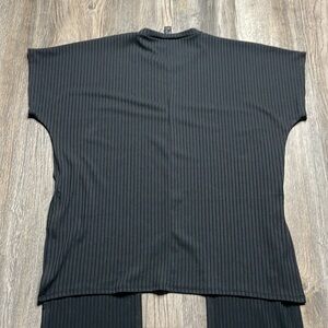 New Look Women’s Ribbed Black Short Sleeve Blouse with front Knot, size 6. In excellent used condition. Super cute. Front is cut for front knot. Side slits. See pictures for sizing and fabric content.