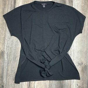 New Look Women’s Ribbed Black Short Sleeve Blouse with front Knot, size 6