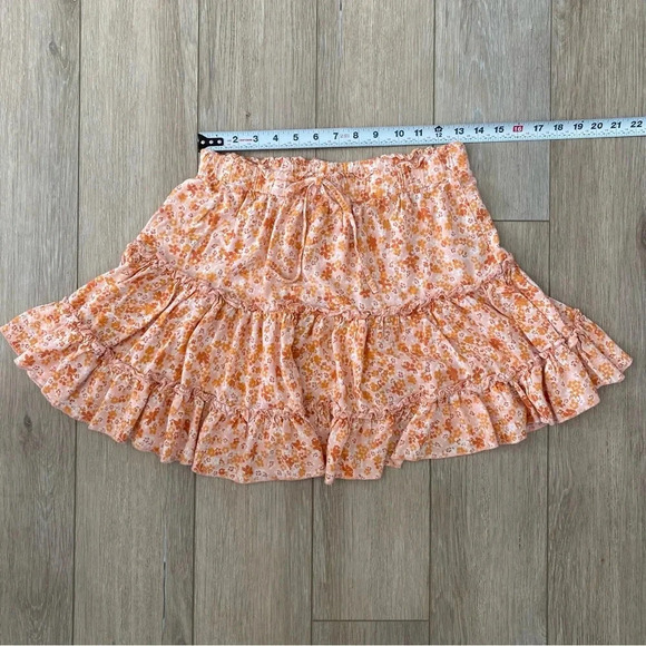 New Look Women’s Ruffled Floral Mini Skirt Elastic Drawstring Peach White Lg EUC