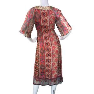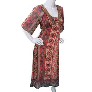 New Look Womens Size UK 12 US 8 Kaftan Midi Dress Half Sleeve Paisley Silk Red