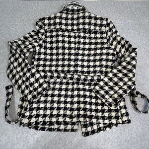 New Look Wool Blend Houndstooth Pea Coat Button Down Black/White - Women's Large