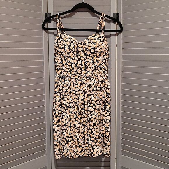 New Look Black, White, and Pink Floral Mini Dress- Size L