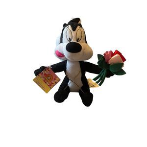 New Looney Toons Pepe Le Pew Rose Bouquet And Lipstick Kiss Stuffed Plush 10"