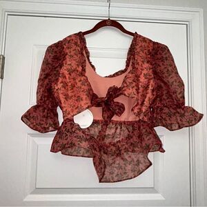 New, Lost + Wander Venus Rising Floral Print Puff Short Sleeve Peplum Top