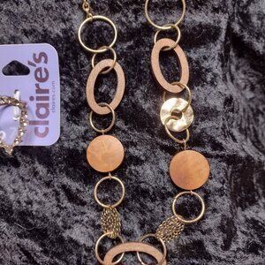 This lot includes 12 items from Claire's/Icing! Earrings, rings, ear cuff, ear crawler, fashion eye glasses, and an awesome necklace! MSRP of over $103.00 shown on the retail price tags!! Please note the gold medallion earrings have discoloration that is faint on the front and more noticeable on the back, other items may have retail shelf wear/markings on the tags and fashion glasses may have faint surface scratches, see pics. Buyer will receive the items shown in the photos. Please let me know if you have any questions!
