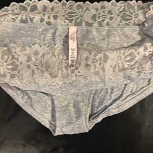 New! Set of 3. Includes white, pink, and gray hipster lace-waisted panties. Originally $14.50 for one! Snag this deal now!