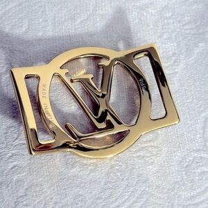 Stylish Louis Vuitton buckle in gold. Features signature LV design.