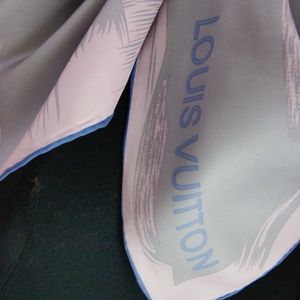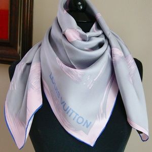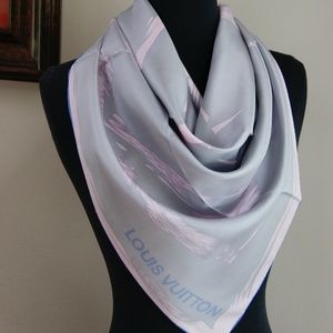 New Louis Vuitton Arty Silver Gray Pink Blue Border Silk Scarf