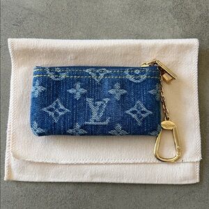 New condition! Gorgeous authentic Louis Vuitton denim key pouch. Brand new - impulse purchase and I never ended up using it. Comes with box, ribbon, tag and dustbag. Perfect for the holidays!
