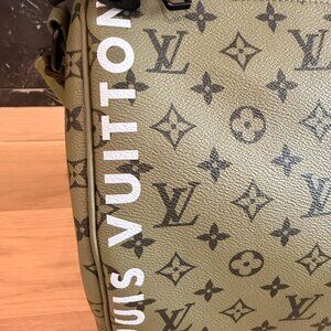 New Louis Vuitton Keepall Bandouliere 55 Khaki Green/Vermillion Red M23963