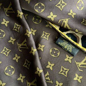 New Louis Vuitton Monogram Logo Animal Print Oversize Brown Gold Silk Wrap