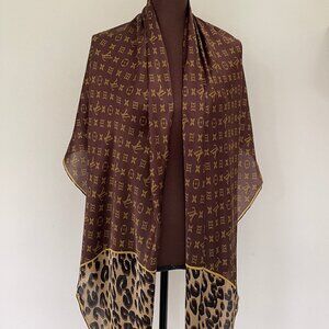 Authentic Louis Vuitton Monogram Logo Animal Print Oversize Silk Wrap