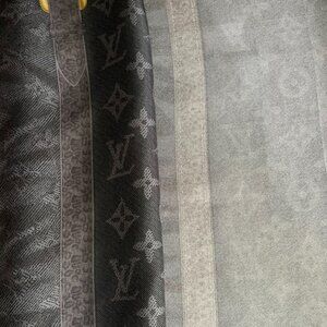 New Louis Vuitton Scarf Monogram Denim Blask Gray Square Silk Wrap