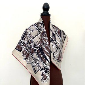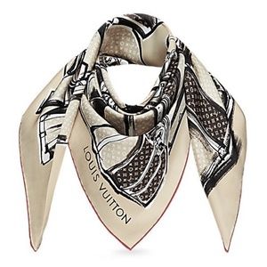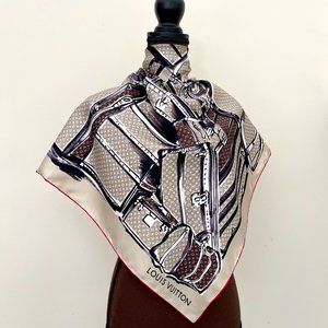 Authentic Louis Vuitton Silk Scarf combines the instantly recognizable Monogram pattern with LV historical Luggage design