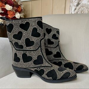 New! Love Moschino Gold Studded Hearts Slip On Black Leather Boots Sz 38.