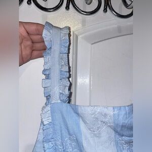 Live your boho, cottage core dreams in this stunning blue and white striped/ gingham dress! It’s so feminine and chic and in true Love Shack Fancy all the details are so good! I absolutely love the adjustable covered button straps- perfect to fit comfortably to you.