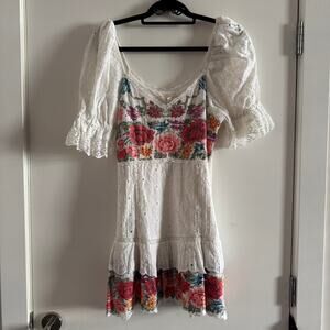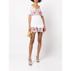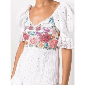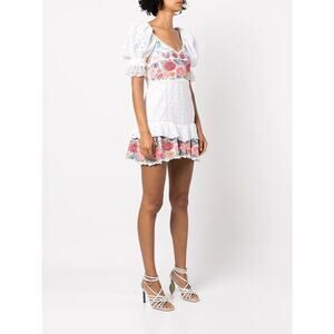 New LoveShackFancy Thressey Mini Dress White Embroidered Floral Ruffled Sz 8