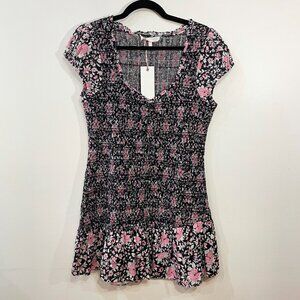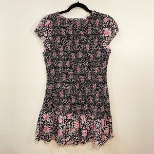 New LoveShackFancy Trevor Cotton Smock Floral Mini Dress Pink Black Large $345