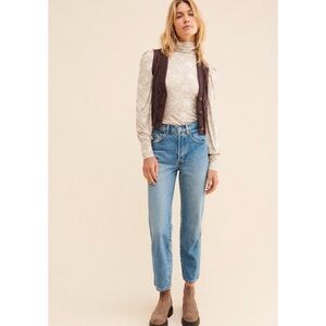 New LoveShackFancy Vienna Neutral Beige Floral Puff Sleeve Turtleneck Top Small