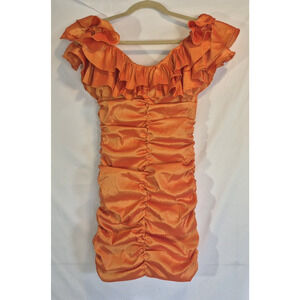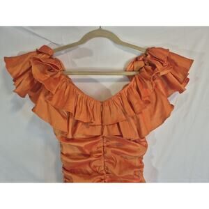 New Lovers & Friends Orange Nikolina Ruffled Off the Shoulder Ruched Dress Small