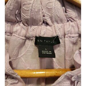 New Ann Taylor Lt Purple 3D Floral Applique Embroidered Ruffle Neck Puff Sleeve Top