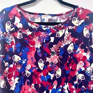 New Bright floral top by LuLaRoe. Features a mix of blue, pink, and purple hues. Perfect for adding color to your wardrobe.