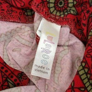 New LuLaRoe Tall & Curvy Leggings Red With Olive Green Floral Paisley Designs