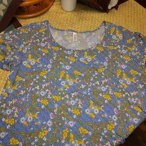 New with tags LuLaRoe short sleeve Classic T size women's 3XL. It is blue with yellow multi-color flowers.