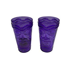 New Luau Purple Tiki Totem Pole Set of 2 Tumber Cups Hard Plastic 6.5 in Tall