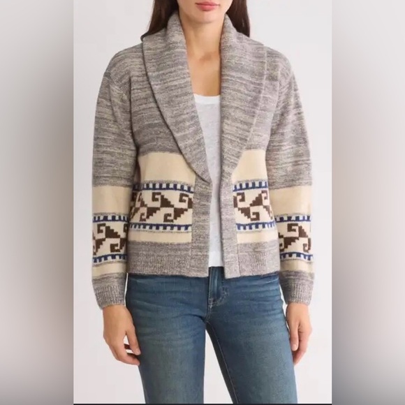 New Lucky Brand Aztec Gray Shawl Collar Cardigan size Large