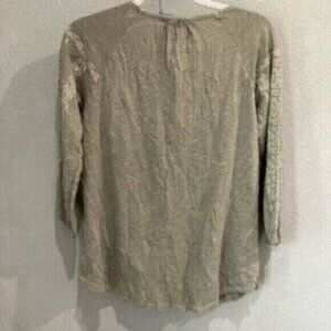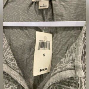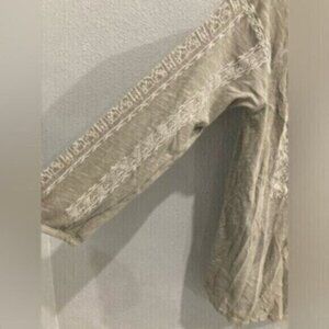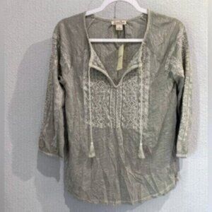 New Lucky Brand Embroidered Boho Neutral Lagenlook Mod Relaxed Fit Tassel Top