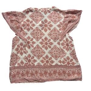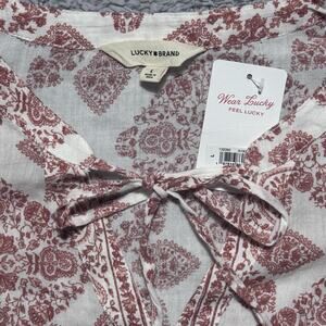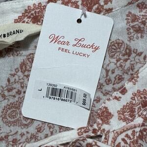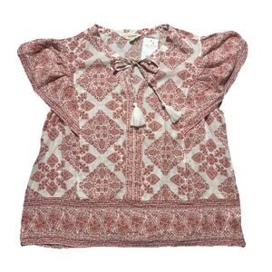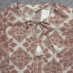 New Lucky Brand Flutter Sleeve Tassle Boho Print Blouse SZ L $70