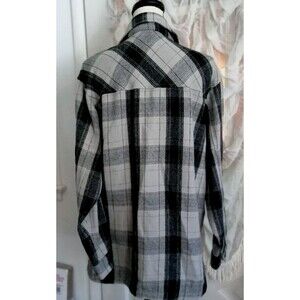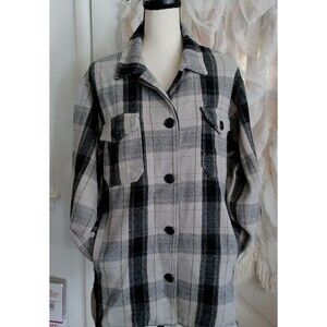New Lucky Brand Pea Coat Jacket Womens Size M Relaxed Fit Gray Plaid Black Gray
