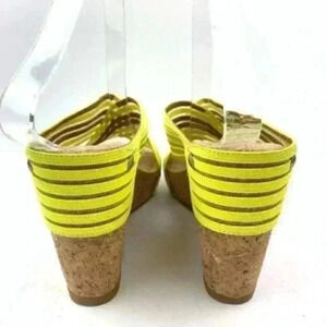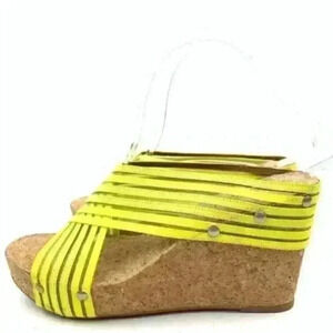 New Lucky Brand Platforms Size 8 38 Miller2 highlighter neon yellow striped cork Studded Wedges