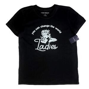 New! Lucky Brand You Can Change the World Graphic Print Soft Cotton T-Shirt Top