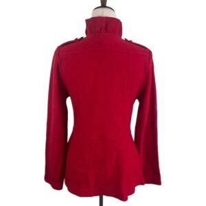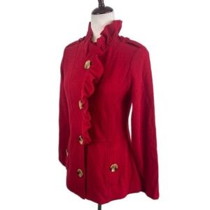 New Luii Red Wool Ruffle Front Jacket Military Style Button Coat Size Medium