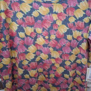 New with tags Lularoe Irma tunic top with a tulip pattern. XXS. Armpit to armpit is 23 inches. Shoulder to hem is 27 inches.