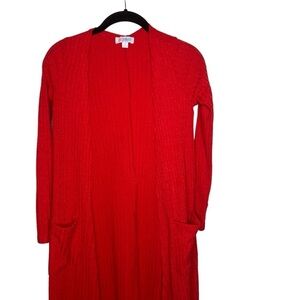 New Lularoe Women’s Sarah Red Rubbed Duster Cardigan Pockets Size Small BNWT