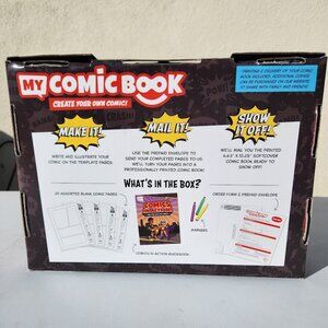 Includes comic book template pages, order form, instructions, guide book, color markers, postage-paid envelope