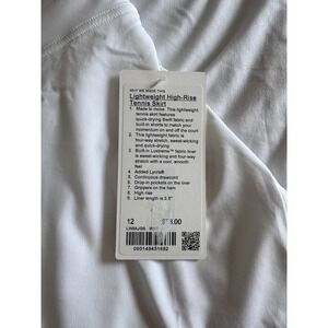 New Lululemon Lightweight High-Rise Tennis Skirt Size 12 White LW8AJGS Skort NWT