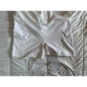 This Lululemon skort is perfect for any athletic activity, from tennis to cycling and even hiking. It features a solid white color with a pull-on closure and is made of a lightweight nylon, nulu, and polyester blend fabric. The skirt length is short, and it has a high-rise fit, making it comfortable and stylish.