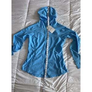 New Lululemon Mist Over Windbreaker Jacket Size 8 Blue Pockets Thumbholes NWT
