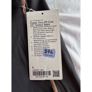 New Lululemon Power Thru HR Crop 23" Black Sz 6 Black LW6BV8S Compression, RARE