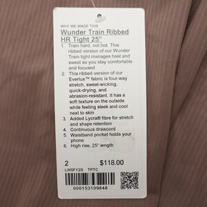 New Lululemon Size 2 Wunder Train Ribbed HR High Rise Tight 25" TPTC Taupetastic
