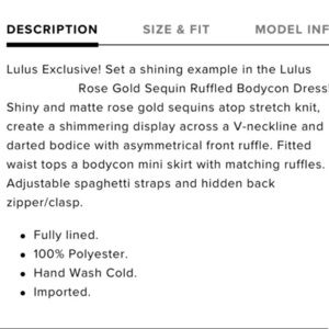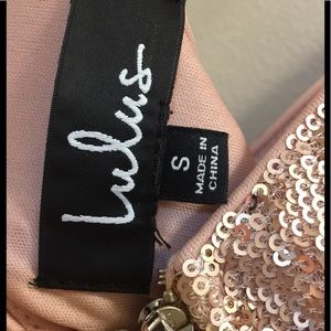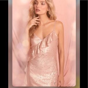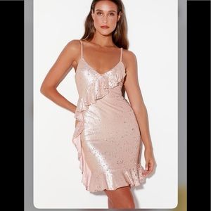 NWOT, lulus Clementina Rose Gold Sequin Ruffled Bodycon Dress, no trades