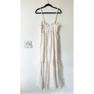 New Lulu’s Cream Charm and Charisma Floral Burnout Tiered Midi Dress XS