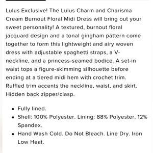 New Lulu’s Cream Charm and Charisma Floral Burnout Midi Dress