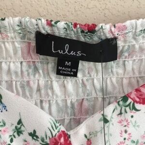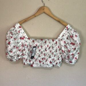 New Lulus Cute Factor White Floral Print Puff Sleeve Crop Top Size M NWT