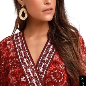 New Lulus Daydream Red Floral Print Bell Sleeve