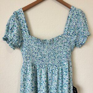 New Lulus Dress Womens Medium Blue Ready to Bloom Floral Smocked Tiered Maxi M